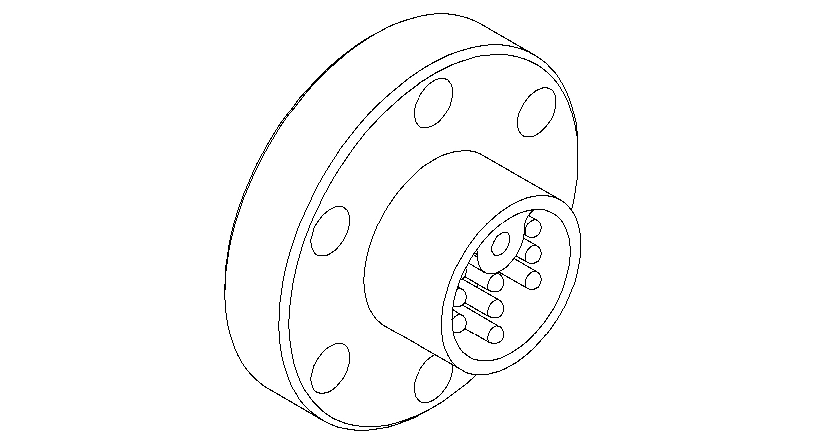 - Subminiature C-type Multipin Feedthrough, 9 Pins, 500 Volts, 5 Amps per Pin, 1.33" Conflat Flange