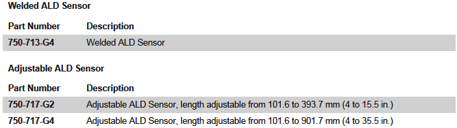 | product spec | Type : Welded ALD Sensor, Adjustable ALD Sensor