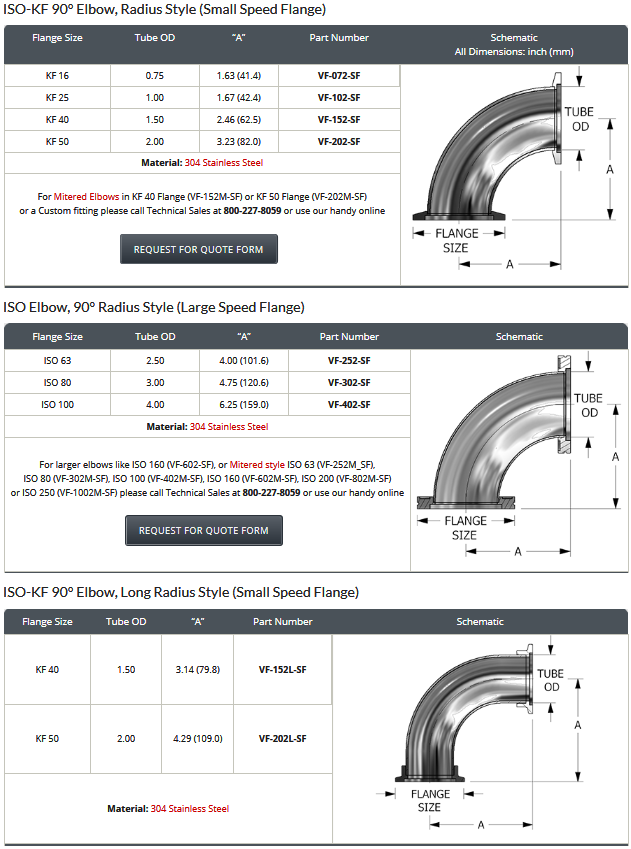 - Huntington manufactures Elbow fittings in all the popular sizes with ISO and ISO-KF flanges. From standard radius in 90° and 45° to long radius and mitered styles we have elbows for every application.