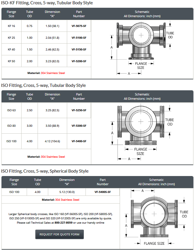 5-Way Cross Fittings, ISO & ISO-KF