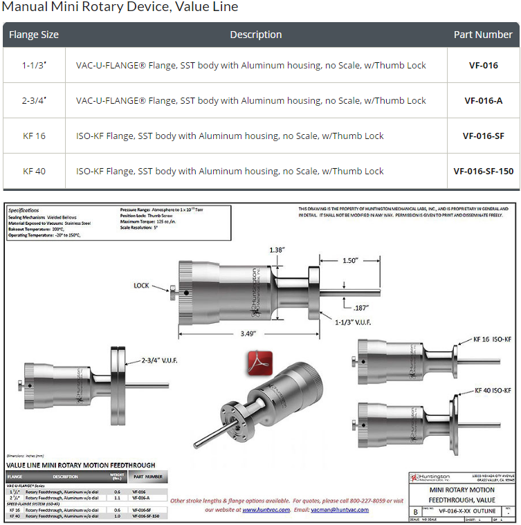 - Huntington rotary motion feedthroughs comprise one of the most varied offerings in the industry. Standard manual & motorized operation with multiple flange options are available in economy, standard, high temperature, digital counter, precision & heavy duty models.