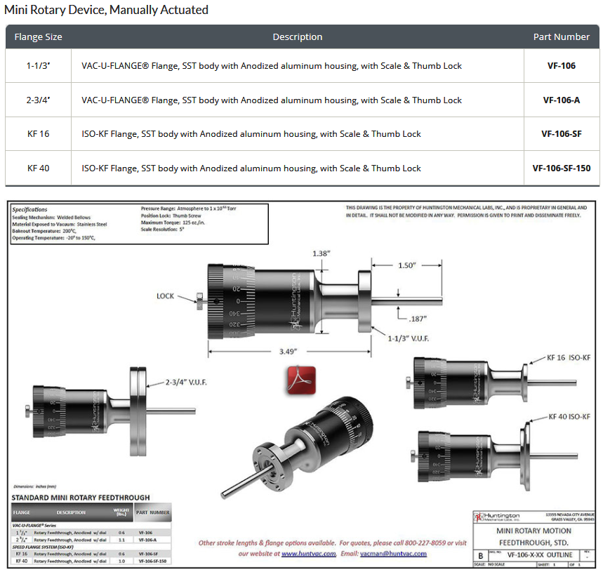 - Huntington rotary motion feedthroughs comprise one of the most varied offerings in the industry. Standard manual & motorized operation with multiple flange options are available in economy, standard, high temperature, digital counter, precision & heavy duty models.