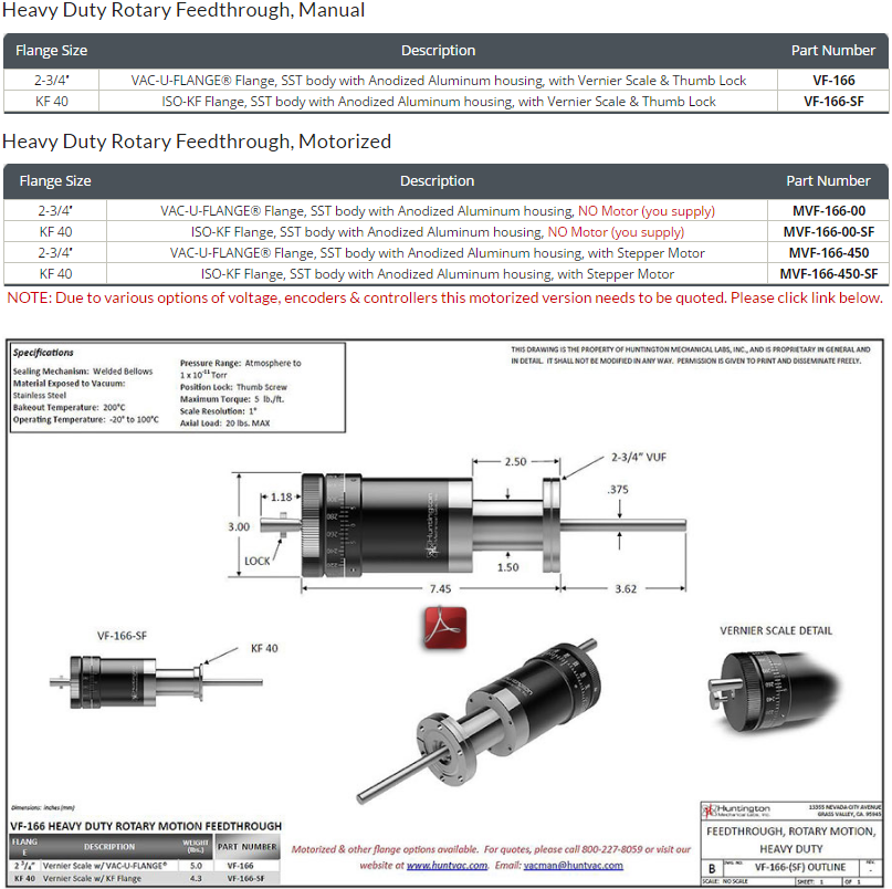 - Huntington rotary motion feedthroughs comprise one of the most varied offerings in the industry. Standard manual & motorized operation with multiple flange options are available in economy, standard, high temperature, digital counter, precision & heavy duty models.