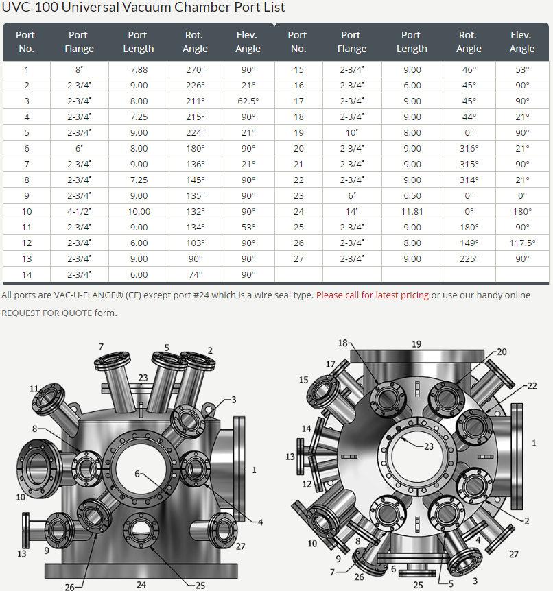 - Huntington has designed an ultra-high vacuum Universal Vacuum Chamber suitable for a variety of research experiments including surface science. The chamber is made from 304 stainless steel and has a 14 inch nominal diameter with a number of ports for mounting instrumentation, sample transfer, viewports, roughing and UHV pumps.