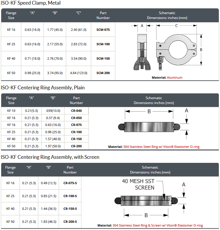 - Small Speed (KF) Metal Clamps and Metal Rings