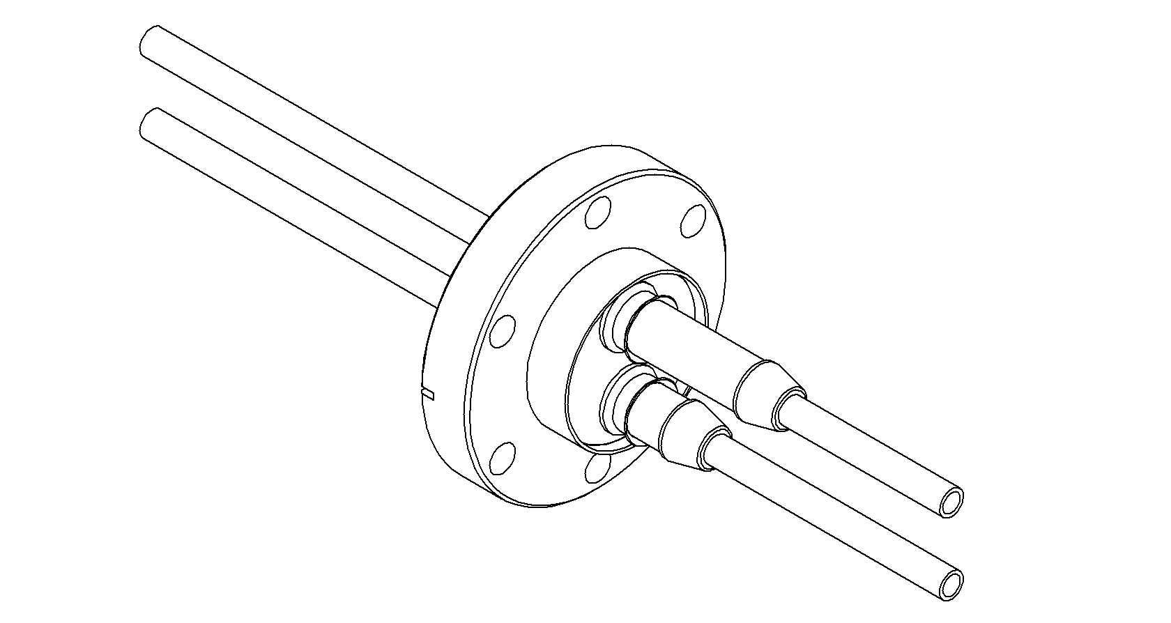 - RF Power Feedthrough, 8000 Volts, 10 KW @ 450 KHz, 2 Tubes, 0.25" Copper Conductors, 2.75" Conflat Flange