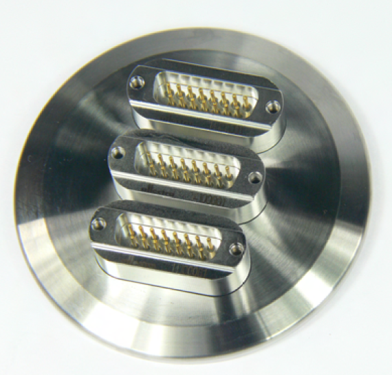 - DN63ISO-K FLANGE, SUB-D 15-WAY FEEDTHROUGH, UHV, HIGH CURRENT, 10A