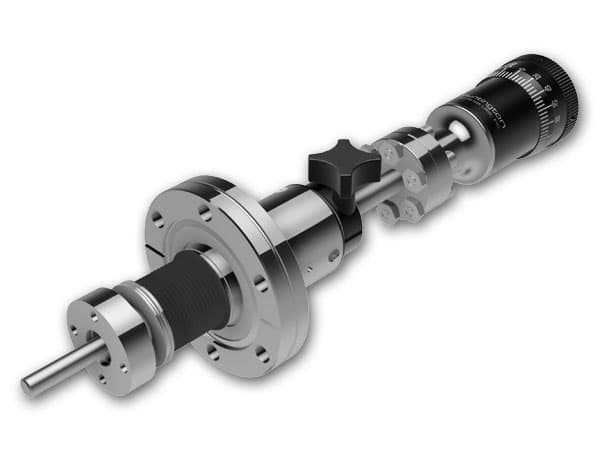 Manual Rotary-Linear Feedthrough, StandardSST Flange w/Aluminum bodyAnalog Scale, Thumb LockBakeout: 200° C (Max)